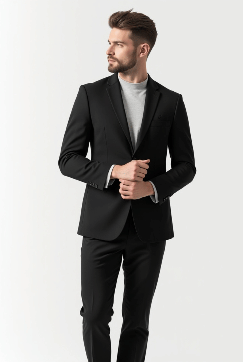 The silhouette features a tailored profile, clean lapel structure, and streamlined finish to maintain a sharp and professional look. Its construction is suited for all-day wear, allowing comfort and ease of movement across office, meeting, and travel environments.